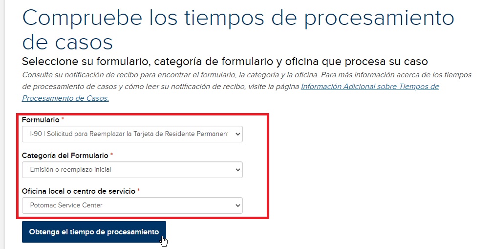 - En primer lugar, ingresa a la página web oficial del USCIS y dirígete a la sección "Tiempos de Procesamiento"